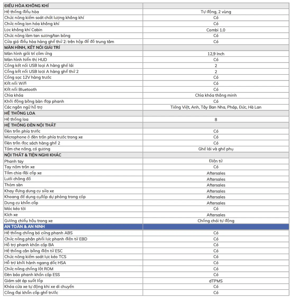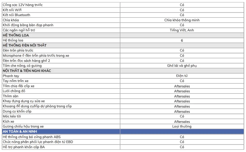 • Mức đánh giá an toàn: ASEAN NCAP 3*