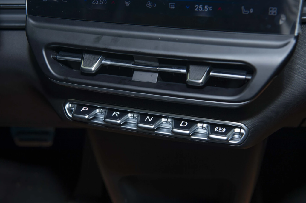 Cần số dạng nút bấm và phanh tay điện tử được đặt bên dưới màn hình đa thông tin.