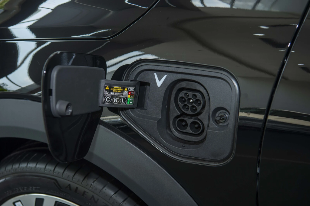 Tay nắm cửa cùng màu với thân xe. Cột chữ C được làm kính đen. Kèm với đó gương chiếu hậu cũng được làm cùng màu với thân xe, tích hợp đèn LED báo rẽ, Camera 360 & Cảnh báo va chạm trên gương cũng được tích hợp trên mẫu xe điện VF6.