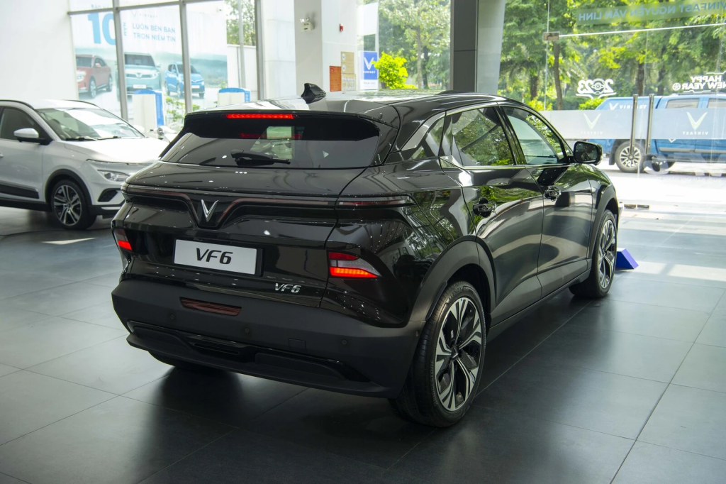 Ở mẫu xe điện VinFast VF6 trang bị cánh gió thể thao, ăng ten vây cá mập.