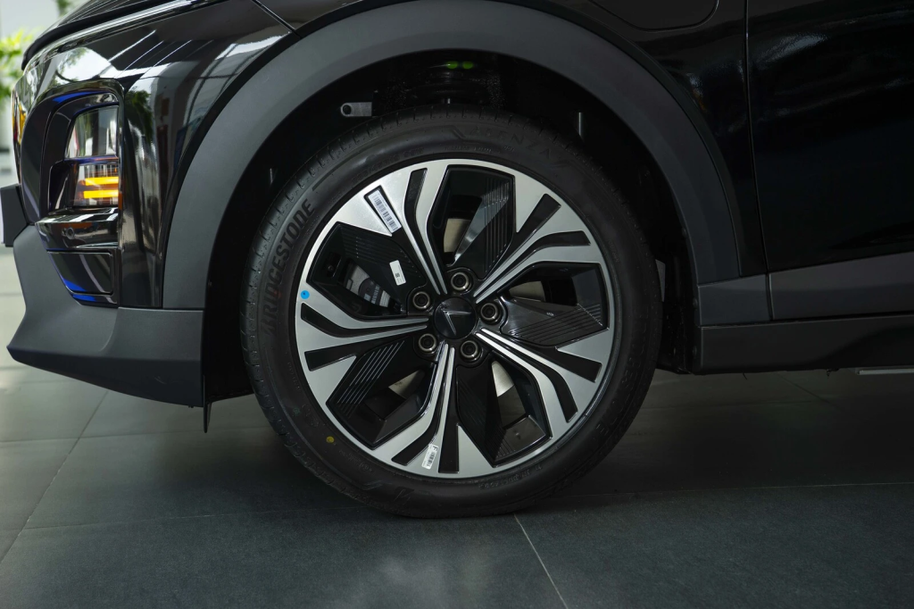Mặt ca-lăng của VF 6 được làm kín và liền mạch với thân xe, giúp cho tổng thể xe trông liền lạc từ trước ra sau. Ở phiên bản Eco dùng bộ la-zăng 17 inch, còn bản Plus với kích thước 19 inch.