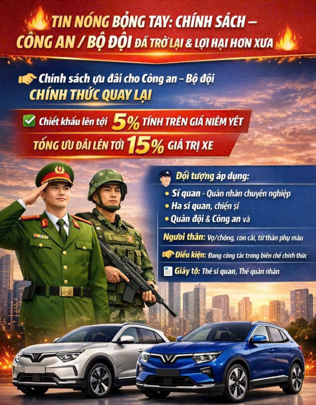 * Giảm thêm 5% khi khách hàng là Công an, Bộ đội