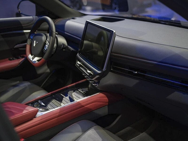 Khu vực táp-lô được tiết chế tối đa các chi tiết, mọi sự tập trung đều dồn về màn hình giải trí kích thước lớn, hiện diện ngay vị trí trung tâm. Màn hình này thiết kế quay hẳn về phía tài xế, giúp mọi thao tác được thực hiện tiện lợi hơn. Phía dưới là các nút bấm chức năng.